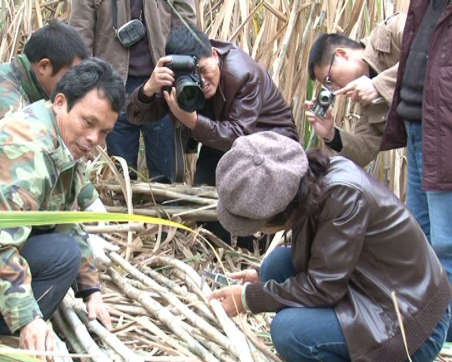 图为柳城03/182甘蔗的抽检现场。 蔗海飘香的成熟季节,自治区农业厅甘蔗验收组来到柳城县大埔镇洛古村,对柳城03/182甘蔗新品系进行抽检,抽检过程及抽检情况 据了解,柳城县从2003年开始开展甘蔗杂交育种工作,共筛选和储备了具有推广应用前景的甘蔗新品系共20个,其中柳城03/182具有特早熟、高糖等优势,产量与新台糖22号相当,宿根、抗性均优于新台糖22号。为加快柳城03/182甘蔗新品系示范和推广,自治区农业厅糖料处于2008年7月11日和柳城县签订了柳城系列甘蔗品种(品系)的《合作开发协议》。今年, 03/182甘蔗新品系在全区示范推广种植1万多亩,在柳城县示范种植面积近6000亩。