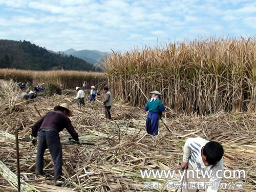 近日影响我国的冷空气活动较为频繁,23-26日,受强冷空气影响,云南省德宏州境内盈江县盏西糖厂蔗区甘蔗遭遇几十年不遇的霜冻灾害,据统计,全蔗区甘蔗种植面积为3万余亩,受灾面积达2.8万多亩,绝收面积5232亩。其中甘蔗生长点以下1个芽坏死的占受灾面积的20.6%,生长点以下3个芽坏死的超过30%,生长点以下芽坏死达50%的占受灾面积的29%。盈江县境内有三家糖厂,其中弄璋、平原糖厂均已经开榨,为尽可能挽回霜冻灾害造成的损失,原定于元月份开榨的盏西糖厂已于昨日(12月30日)下午2时开机榨糖,全力投入受灾甘蔗的在抢收抢榨工作,州、县蔗糖办已赶赴现场协助德宏英茂公司组织抢收抢榨。