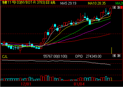 综合外电1月25日报道,ICE原糖期货25日收盘上涨,至30美分上方,因需求持续强劲,供应量紧张。3月原糖期货盘中一度触及30.10美分/磅,是自1981年1月以来的最高位。受到交易商获利了结的影响,该合约收报29.80美分/磅,上涨了102美分,涨幅达到3.5%。