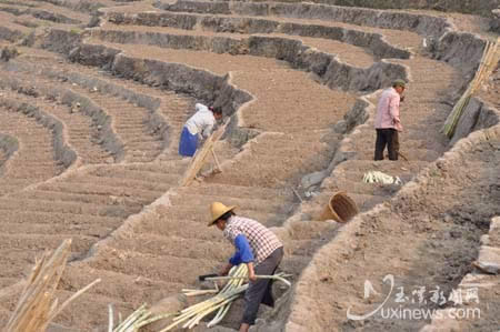 面对着光秃秃的山坳,村民们寄希望于一场“及时雨”,让甘蔗老根能够发出新芽,但是,盼了一天又一天,望了一月又一月,天还是没降下雨来,一片一片的甘蔗就这样眼睁睁地看着枯死了。