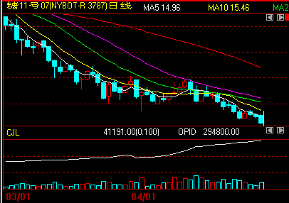 ICE原糖期货周二(4日)收盘下跌,触及一年以来最低位,因美元上涨,食糖供应量增加,引发市场卖盘活动。最终7月原糖期货收盘下跌0.47美分,或3%,报14.51美分/磅,是2009年5月1日以来的最低点。