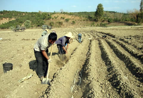 从去年入秋至今年3月份,云南临沧市永德县遭遇了长达9个多月的严重干旱天气,恶劣的天气环境对全县农作物生产特别是甘蔗生产造成了严重损失。对宿根蔗影响:截止3月28日全县受灾面积达34.19万亩,其中成灾面积27.16万亩,绝收面积7.03万亩。共有72个甘蔗专业种植村523个种植小组受到灾害。造成产量损失41.54万吨,损失金额10385万元,农民人均纯收入减少335元。对春植蔗影响:严重致缓下种节令,4月份以前全县春蔗下种面积仅有2.4万亩。为尽快恢复全县甘蔗健康稳步发展,除了在干旱期间抓好抗旱工作外,进入4月上旬,县内旱情得到了逐步缓解,全县各级各部门都大力投入到甘蔗恢复性生产工作中,采取了以下主要措施:一是县委政府、县蔗糖办、三个制糖企业、种蔗乡镇及种蔗村委会统一抽调甘蔗生产工作组,深入到各种蔗乡镇帮助蔗农抓宿根蔗管理及督促春植蔗种植进度。二是制糖企业制定出台中耕管理及新植蔗扶持政策。宿根蔗政策:每亩无偿补助7公斤尿素;新植蔗政策:现翻现种地块每亩扶持500元,轮作地块每亩扶持400元,蔗梢做种地块4月25日前下种的每亩扶持200元,4月25日后下种的每亩扶持100元,对岩盘片区秋冬植地块不出翻种的每亩扶持600元。三是进一步加大集雨水窑、小水池及新建和修复灌溉沟渠等基础设施建设。初步计划,09/10榨季期间全县计划修建积雨水窖及调节水池11000座,修建水利沟渠93.7km。通过各级各部门的密切配合,全力投入,截止5月17日全县共进行宿根蔗中耕管理22万亩,春植蔗下种6.63万亩,其中田蔗1.5万亩,地蔗5.03万亩。在今年的秋冬植中,还将续继加大种植力度,希望在10/11榨季开榨之前,将全县的甘蔗生产恢复到灾前状态。段开鲜