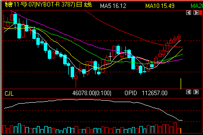 ICE原糖期货周三(16日)受投机买盘的支持而略微上涨,因市场越过此前技术阻力位16.00美分/磅之后开始进行整固,受到投机性买盘支撑,ICE7月原糖期货收盘上涨0.09美分,报收于16.27美分/磅,连续7个交易日收阳,ICE10月原糖期货收盘上涨0.10美分,报收于16.05美分/磅。