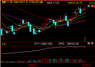 综合外电7月13日报道,ICE原糖期货周二(13日)收盘上涨,全球食糖供给吃紧以及商品期货市场、股市上涨的推动下收高,ICE10月原糖期货收盘上涨0.07美分,报收于17.17美分/磅.