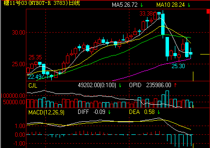 11月11日原糖期货价格一度触及30年高点,但是19日市场下跌了7%,因印度甘蔗收成似乎抵消了巴西糟糕的天气的影响。