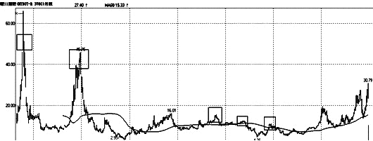第二个问题,调整周期有多久?我们从上图还可以看到这样一个现象。纽约原糖跨年度顶部的回调时间不可能在1—2个月内完成,回调时间往往会超过一年,而回调的幅度则是从那里来回到那里去。