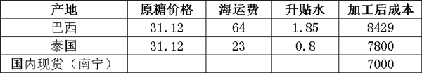整体来看,今年国内糖市可供应量预计为1323万吨,预计消费量为1400万吨,市场存在77万吨的缺口。这需要通过进口来弥补,但ICE原糖加工后成本与国内食糖价格差距太大,如国内现货糖价与进口原糖加工后的成本相比,进口巴西糖相差1429元/吨,进口泰国糖相差800元/吨,已基本杜绝了一般性贸易进口的可能,因此,今年食糖缺口如何进行补充将是政府必须面对的考验。