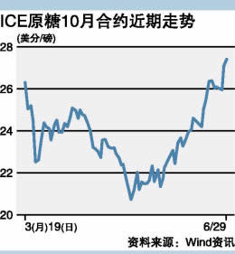 受到世界原糖主产国——巴西的压榨数据低于预期影响,ICE原糖期货本周二收涨4.2%,至29美分/磅上方,这也是该糖价过去三个半月的高位。过去四个月的商品价格疲软和5月以来原油等龙头商品的补跌冲淡了糖价反弹的影响,事实上美盘ICE的原糖过去近两个月的单边涨幅已超过45%,表现好于绝大多数商品。