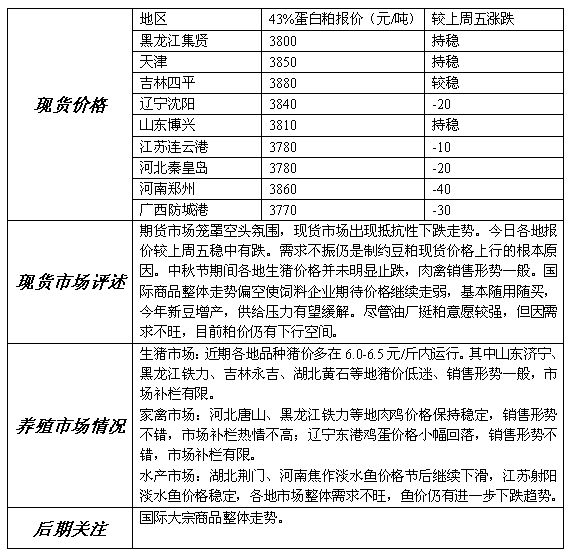 首页市场行情豆类 豆类 豆粕现货市场报道 中国食品产业网 2008-09-16 16:13 豆类 上一篇9月16日福建地区油厂豆粕报价福建地区油厂今日43%蛋白豆粕报价:漳州、厦门地区油厂:3750元/吨左右;泉州地区油厂:3780元/吨,稳定。 上一篇9月16日黑龙江哈尔滨地区大型油厂豆粕报价黑龙江哈尔滨地区大型油厂今日豆粕报价:43%蛋白合同3850元/吨,较上周六涨60元/吨。 相关文章 美豆:需求强劲豆粕短期难跌 豆粕:开启季节性反弹行情 全国绿豆价格10-17 8月11日全国绿豆价格 大豆进口量 如何再创新高 中储粮粮库收轮换大豆价格上调 东北豆行情“普涨” 中国粮油学会称 各类合格油品均可放心食用 11月3日东北部分地区大豆价格行情 10月31日东北部分地区大豆价格行情 10月27日东北部分地区大豆价格行情