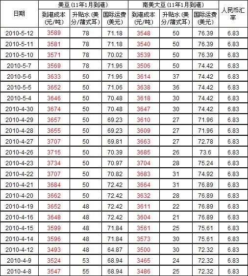 10年5月12日进口大豆到中国港口车船板价格及海运费价格-食品产业网