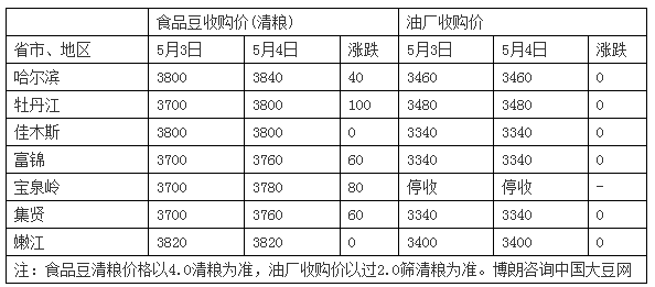 黑龙江地区价格上涨以高蛋白或者优势大豆为主,黑河北部地区优质大豆车板价4000-4040元/吨,普通大豆3900-3940元/吨区间。受港口地区封港以及东北地区春耕提振,短期趋势依然看强,优质大豆价格上涨幅度要高于普通品质大豆,但因为销区市场反应平平加之港口地区进口大豆未来是否能进入市场尚不确定,所以仍然要谨慎追涨。