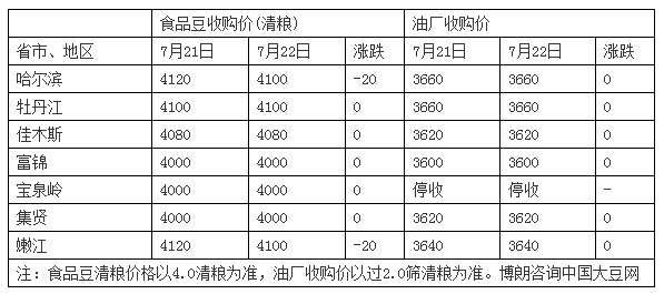 首页市场行情豆类 豆类 7月22日东北大豆市场价格略有下跌 中国大豆网 2016-07-22 16:13 豆类 7月22日东北大豆市场价格略有下跌,哈尔滨周边以及黑河周边市场收购价格下调20-40元/吨,目前主流车板价42 7月22日东北大豆市场价格略有下跌,哈尔滨周边以及黑河周边市场收购价格下调20-40元/吨,目前主流车板价4200-4300元/吨区间,优质大豆达到4400元/吨附近。 近期现货交易清淡且价格下滑,市场交投气氛更显谨慎。本周陈粮拍卖率及价格较上周大幅度调,显示市场抢拍热情下降,预计短期行情稳中趋弱。 上一篇7月21日全国部分地区大豆价格最新行情7月21日大豆价格最新行情,全国大豆价格最新行情走势,南方财富网小编为您提供最新大豆价格最新行情查询东 上一篇7月25日全国部分地区大豆收购价格7月25日黑龙江主要产区齐齐哈尔、哈尔滨周边以及黑河局部地区收购价格、上车价格下调40-80元/吨不等,目前 相关文章 中储粮粮库收轮换大豆价格上调 东北豆行情“普涨” 11月3日东北部分地区大豆价格行情 10月31日东北部分地区大豆价格行情 10月27日东北部分地区大豆价格行情 10月26日东北部分地区大豆价格行情 25日东北部分地区大豆收购价格行 10月24日东北部分地区大豆价格行情 10月21日东北部分地区大豆收购价格行 10月20日东北部分地区大豆收购价格行情 10月19日东北部分地区大豆收购价格行情