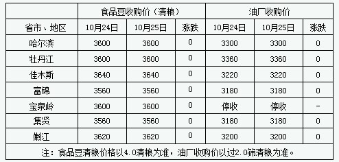 25日东北产区大豆行情没有明显变化,商品大豆收购价格集中在3500-3600元/吨区间,塔豆外销价格集中在3720-
