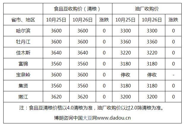今日东北产区大豆行情没有明显变化,商品大豆收购价格集中在3500-3600元/吨区间,塔豆外销价格集中在3720-
