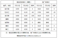 7月15日黑龙江省部分地区大豆收购价格行情: 哈尔滨地区国标三等 3800-4000元/吨; 绥棱地区国标三等 3760-...