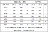 8月2日黑龙江省部分地区大豆市场收购价格: 哈尔滨地区国标三等 3660-3800元/吨; 绥棱地区国标三等 3560-...