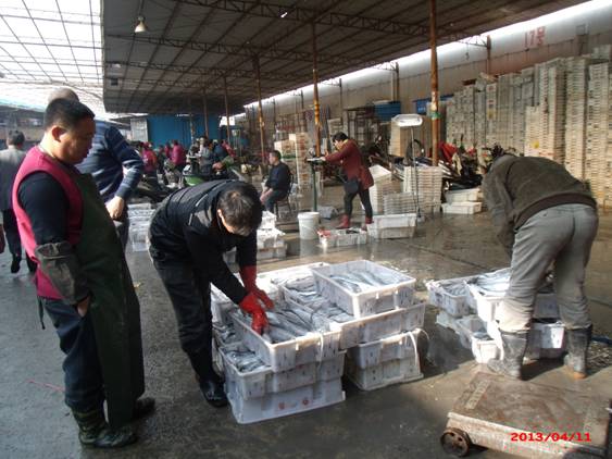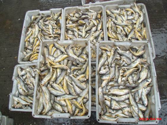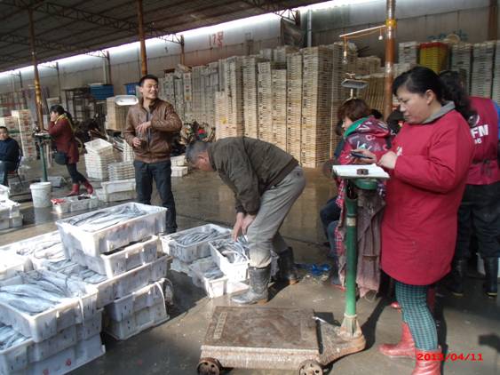 1、从冰鲜水产品交易来看:清明前后,由于涨网船捕捞量大幅减少,在冰鲜市场上交易冰鲜货源也就相对较少。上个月笔者能见到较多新鲜的力鱼,进入四月以后,品种结构发生了较大的变化。前来市场投售的水产品主要以热气小黄鱼居多,且规格大多在0.6-1两左右。中旬以后,渔船到港,大量的带鱼进入市场交易,其价格为:4两以上规格的东海带鱼(正宗的)卖到14元左右/500克,8两以上规格的东海带鱼(正宗的)卖到23元左右/500克。四月份,由于天气转暖,海鲜鱼保鲜难度加大,小黄鱼等规格较小等原因,加上目前时段还不是大量进货进入储存的最佳时机,货源集中到货时,规格1两左右的热气小黄鱼只卖到3.5元-6.5元/500克左右。从这一点可以看出,连这么小的鱼多捕捞上来在卖了,可见水产资源减少已经到了何等严重地步。4月8日后,由于禽流感的因素,农贸市场鸡鸭等停止交易,前来市场选购冰鲜水产品的消费者和前来批货的小贩较以往有明显增多,给市场带来了较旺的人气。