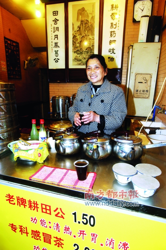 多年在“耕田公”工作的经历,叶桂妹早已熟知各种生草药的药性和能解决的问题。她婉拒了记者对锅里各种草药的请教,“这个得保密”,她笑着说。叶桂妹也没有一味守着秘方,仅靠几十年的秘方煲招牌凉茶。这间老字号实际上还推出了“感冒凉茶”,是他们近期推出的主力凉茶类型之一,“对预防感冒很有效果”,一位前来买凉茶的顾客说。叶桂妹也希望能在自己手中将老字号发扬广大。“今后如果要发展,必须搞现代化”,但她不肯放弃传统的制作模式,就算开分店,也得自己采用现在的制作和经营方法。“开分店,精力、资金、选址都是大问题,目前能把这一间做好我就满足了”。