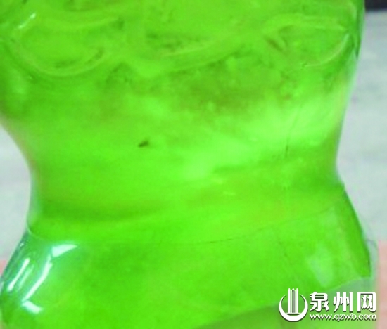 昨日,记者在魏先生家看到这瓶未开封的芦荟汁,一只蚊子泡在里面。他说,5月8日,他在城东街道华兴路华诚批发店花390元买了三箱芦荟汁饮料,发现其中一瓶内有一只蚊子。