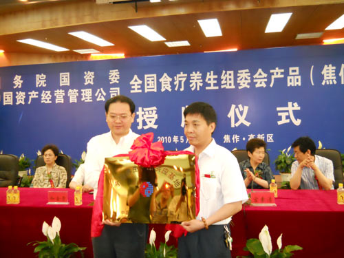 2010年年初,怀药开发工作受到中国资产经营管理公司和全国食疗养生专家组织委员会等单位的重视。5月29日,两家单位联合授予焦作市昆宇怀药开发有限公司“全国食疗养生产品示范基地”称号。对此,中国资产经营管理公司总裁助理邵章鸿先生表示,四大怀药是焦作市独有的食药同源产品,有非常大的实用价值和市场开发价值。