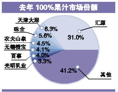 今夏业内增加了对果汁的投资,百事可乐在全国最少8个城市推出“纯果乐100%”果汁,和定位中高端的都乐牌一起推行双品牌策略。可口可乐发布有10多种营养元素的果汁饮料“美汁源10分V”,光明也在广州上市了冷藏果汁,汇源在浙江建立首个基地。