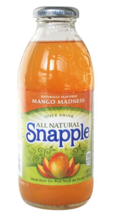 斯纳普牌芒果味饮料473ml价格13.9,这是来自美国进口的健康饮品。Snapple斯纳普牌芒果味饮料口感温和润滑,香甜可口,采用用天然优质的原料加工而成。Snapple拥有很多不同的口味,诱人的颜色及包装,包括粉色柠檬,桑子与桃子,桑子与蔓越莓等,每种都源自地球上极好的素材,口感极佳,made from the best stuff on earth!斯纳普牌芒果味饮料以水,白砂糖,奇异果浓缩汁,柠檬酸,芒果浆,食用香料,蔬菜汁,β-胡萝卜素为配料。