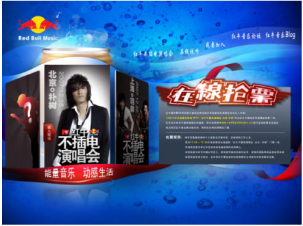 这种演唱会的形式来到中国,是因为一个一直在运动场上驰骋的品牌——红牛饮料。一贯赞助运动比赛的红牛饮料,突然之间关注起演唱会,而且首战即出手不凡,受到什么触动呢?