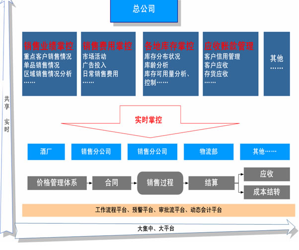 白酒行业目前是典型的买方市场,增加市场营销力度,加强终端销售成为白酒行业的主要出路。节假日、年末是酒类销售高峰,企业通常先发货后结算,以便占领更多的市场份额,此时更需要及时了解区域市场及其备货情况;正由于此,网络化管理、获得实时信息对酒类企业显得尤为重要。