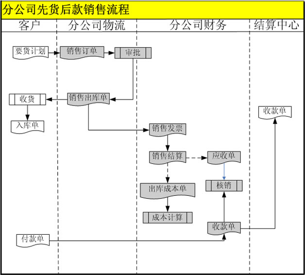 3.2.5、分公司销售业务的实现:以先货后款模式为例说明