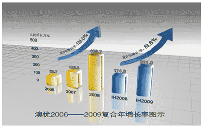 当然,这个过程并非一帆风顺,仔细翻阅澳优的销售数字,你会发现澳优2005年和2009年是两个关键节点,2006年至2008年,澳优销售收入和净利润复合增长率分别达到107.9%,143.9%。连续三年保持超过100%的复合增长率,保证了澳优成功跻身一线进口乳品品牌前列。