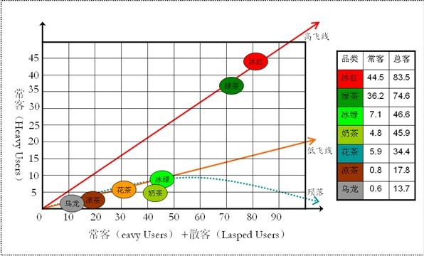 至此,琼斯教授认为只要有市场渗透率,其他相对都不重要!按他的意思讲就是,只要有人气,什么都有了!因为这个结论的依据是消费者买完某产品后,一定会继续回头再买。并且消费者会按照一定的频率买,比如:烟草是一天一包,饮料通常是3天一次,牙膏是2个月一次。而在这个频率下消费者迟早会再买你的品牌(对此琼斯教授的理由是消费者有定期更换品牌的需要)。多么完美和理想化的工具,我们也希望这个世界是有序和理性的。一切尽在掌握!