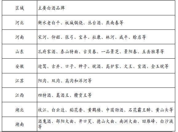 表1、各省地产酒品牌