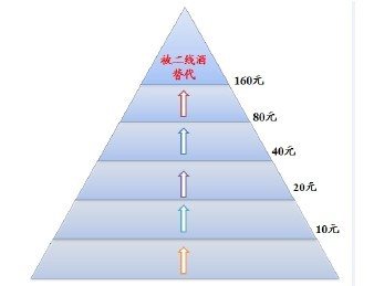 过去在市场形势很好的情况下,厂家产品线都往上走,二线白酒重点打造500-800的次高端产品,三线白酒也重点打造100-200价位的相对的“高端”产品。但在目前市场形势相对转冷的情形下,二线白酒对100-200价位的份额之争是必然。此外,在消费升级下,一部分原本消费三线白酒的商务消费和居民个人消费会向二线白酒消费转移。中国人的爱面子文化,不同档次的消费是依据消费能力而决定的。当随着居民收入提高,品质意识增强,有能力消费更高档次的白酒时就有可能会选择品质更好品牌力更强的中高端白酒品牌。