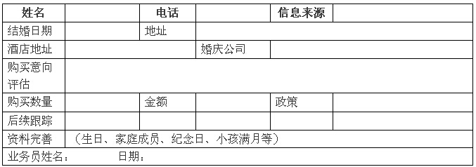 此外,还应该建立消费者相关的信息登记表,进行后续喜宴的跟踪。