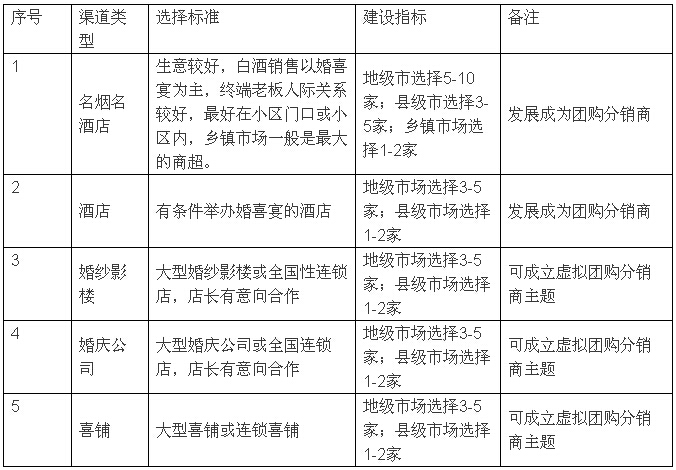 针对核心的喜宴渠道的核心客户可发展成为婚喜宴分销商或联营体,享受分销商的待遇和政策。参考如下形式:
