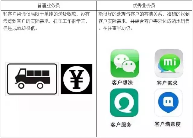首页市场营销营销分析 营销分析 白酒旺季,为什么你的酒还是难卖? 杜康秘藏 2016-12-26 13:44 营销分析 普通业务员 VS 优秀业务员 白酒进入旺季,而有很多业务员工作还是没多大起色。俗话说:冰冻三尺非一日之寒 普通业务员 VS 优秀业务员 白酒进入旺季,而有很多业务员工作还是没多大起色。俗话说:“冰冻三尺非一日之寒”。凭什么别人能加薪、升职,而你不能。看看你跟优秀的酒水业务员差距在哪? 一、关于刚入职时 二、关于对待问题 三、关于执行力 四、关于个性 五、关于下班后 六、关于工作重点 七、关于客户沟通 八、关于视界 九、关于批评 十、关于职业规划 上一篇春节要是想大赚,如何备货是关键对于节日备货,也许很多老板都有过郁闷的经历: 由于计划不周,备货不足,在产品销售最快的时候,盘点仓库 上一篇“小而美”白酒尽夺眼球:定制白酒营销新方向当今时代,随着社会的快速发展,以及消费市场的巨大变化,人们的消费观念有了很大改变,消费心理也日渐成熟,很多消费者不再盲目追求千篇一律的大工业化的产品,而是讲究自身的消费特性,避免消费的大同。因而,个性消费日趋明显,消费开始进入个性化需求时代,它对企业 相关文章 海底捞为什么不像肯德基那样到处打广告? 青年更愿意选择负能量的“丧茶” 还是“随时向前”的脉动 业务员:卖什么都是卖,为什么要卖酒?论业务员最重要的素质! 新年伊始 酒商谋划的何种战略 将决定收货的金盆还是跳蚤 为什么销售高手大多是优秀的人? 为什么越打折,顾客越少、越还价? 为什么有些大经销商的生意一天比一天萧条? 调味品是重庆小面加盟火爆的重要原因 春节临近,海鲜礼盒受冷落 中国糖酒网与您分享酒桌上的经销商为什么能做大做强?