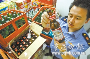 重庆市近日连端两大造假窝点,查获假“嘉士伯”、“百威”等啤酒5万多瓶