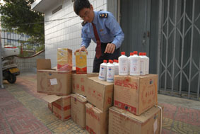 一家没有工商营业执照的公司竟然搞起了国酒茅台批发,并且还堂而皇之地销售着贵州茅台酒股份有限公司根本没有生产过的所谓的职工专用“内供酒”;日前,这家位于石狮市灵狮街菲律宾商厦2楼的无照公司被灵秀工商所依法调查,并当场查获24瓶涉嫌假冒的“内供酒”。