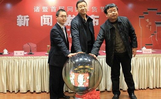1月8日,诸暨首届“网络年货节”新闻发布会在诸暨大酒店举行。诸暨市委常委、常务副市长赵源恩、诸暨市农业局局长孟志康、杭州百草味公司市场总监曹龙伟出席致辞,并共同启动水晶球,诸暨首届“网络年货节”正式开幕。诸暨特色农产品组团打包,积极探索“电商换市,电商富农”新模式。