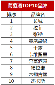 葡萄酒热销榜TOP10的前五名分别是:长城、拉菲、张裕、黄尾袋鼠、干露,众多知名品牌在11.11购物节期间均有不俗表现,体现了消费者对葡萄酒的日趋追捧。