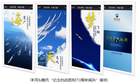 如果说“酒文化”可以达到“润物细无声”的营销效果,那么在“纪念抗战胜利70周年阅兵”中表达自己的爱国情怀更是“精明”。洋河通过与腾讯新闻“纪念抗战胜利70周年阅兵”专题合作,借助腾讯新闻的平台和内容优势,将洋河与民族情结、中国力量展现给消费者,充分实现了品牌形象的提升。