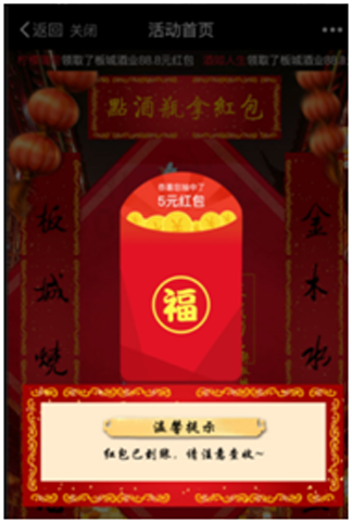 但是活动还是有一个缺陷,活动中发红包的环节虽然促进了用户分享,但却影响了企业品牌文化的传播,因为用户大多数的关注中心都聚焦到红包的环节,一键制片的吸引力下降,对于企业来 说,虽然可以很快速的在用户间扩散,但是严重弱化了品牌推广的初衷,对企业文化的宣传产生一些较为负面的映像。如果红包的发送可以和企业文化的宣传相结合,将会是一个非常可观的受众群体。