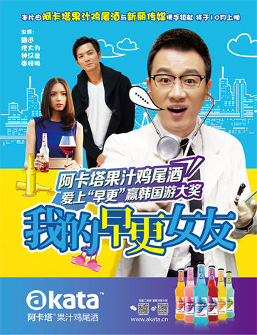 阿卡塔预调鸡尾酒可以说是互动营销的领导者。2014年,品牌参与大荧幕植入,在由周迅、佟大为、钟汉良、张梓琳等主演的《我的早更女友》中表现突出,而且线上也开展了“爱上早更,赢韩国游大奖”主题活动,更制作了大型主题网站,活动期间访问量破千万,参与人数也高达数十万。线下也结合主题在商超、电影院进行推广,提高了品牌的同时也拉动了产品的销量。