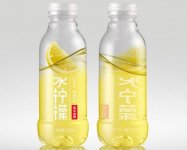 果味水系列饮料包装简约大气,采用半透明包装,瓶身采用黄金比例分割,外包装的水果图案给人以浸入水面的...