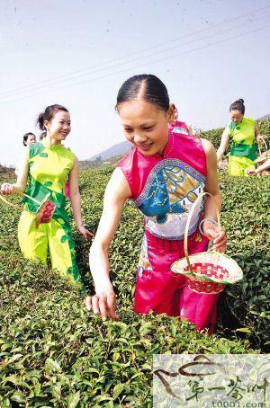 开茶节上,美丽的茶乡姑娘正在做采茶表演(陈翔 摄)