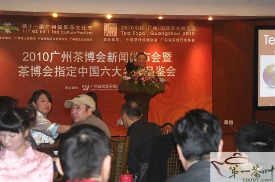 绿、黄、白、青、红、黑,中国六大类名茶,六道芳香醇美的茶汤开启了本届广州茶博会的序幕。12月20日上午,第十一届广州国际茶文化节、2010中国(广州)国际茶业博览会(以下简称广州茶博会)新闻发布会暨茶博会指定中国六大名茶品鉴会(以下简称新闻发布会)在广州•琶洲•中洲中心举行。广州市原政协主席、广州茶文化促进会会长邬梦兆先生,广州茶文化促进会常务副会长兼秘书长黄波先生,广东省茶业行业协会秘书长、广东省茶叶学会秘书长张黎明女士,广东省工艺美术协会副会长莫国伟先生,勐海茶业有限责任公司营销中心总经理华毅先生,广州市恒福茶业有限公司市场总监胡文涛先生,广州益武国际展览有限公司董事总经理李广韬先生等主、承、协单位的相关领导,参展企业代表,各大主流新闻媒体和专业媒体的记者40余人出席了新闻发布会。
