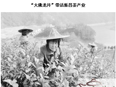 如今,在大佛龙井品牌带动下,原本分散经营的茶产业已成为新昌县的强势产业。2010年,新昌茶叶产量5510吨