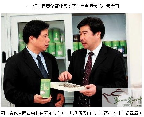 傅家兄弟生于遍植茉莉花与茶树的仓山城门山间,家中制作茉莉花茶历史已有百年。13岁时,兄弟二人先是学习制茶,后又成为城门茶厂业务员。傅家兄弟本有千条路可致富,但随闽南铁观音等茶的崛起,福州大批茉莉花厂纷纷倒闭,茉莉花茶面临绝境。然而,傅家兄弟骨子里军人不服输的基因不灭,他俩决意要让茉莉花茶重振雄风。1985年,兄弟俩创办了福州春伦茶业有限公司。