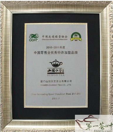 第十三届连锁加盟特许展于日前结束,山国饮艺作为闽南高端品牌茶企代表应邀参与,并在大会上囊括四个大奖,荣获“2010中国特许经营连锁120强”、“2010-2011年度中国零售业优秀特许加盟品牌”,其中山国饮艺河南许昌加盟商丁子强荣获“2010-2011年度中国优秀加盟商(单店)”,山国饮艺南京加盟商宋文仙荣获“2010-2011年度中国优秀加盟商(区域)”。荣誉见证实力。四项大奖是山国饮艺综合实力强大的见证,是山国饮艺自探索特许连锁经营九年来成绩斐然的最好见证,也是专业机构、行业专家、加盟商、消费者对山国饮艺的认可。作为茶行业连锁加盟的领军企业,山国饮艺正逐步塑造茶业连锁加盟的典范形象。