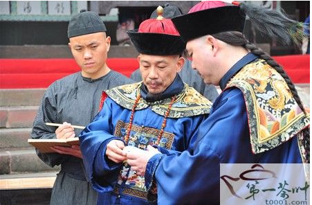 怡清源董事长简伯华(右二)在《菊花醉》中饰演天子评茶官